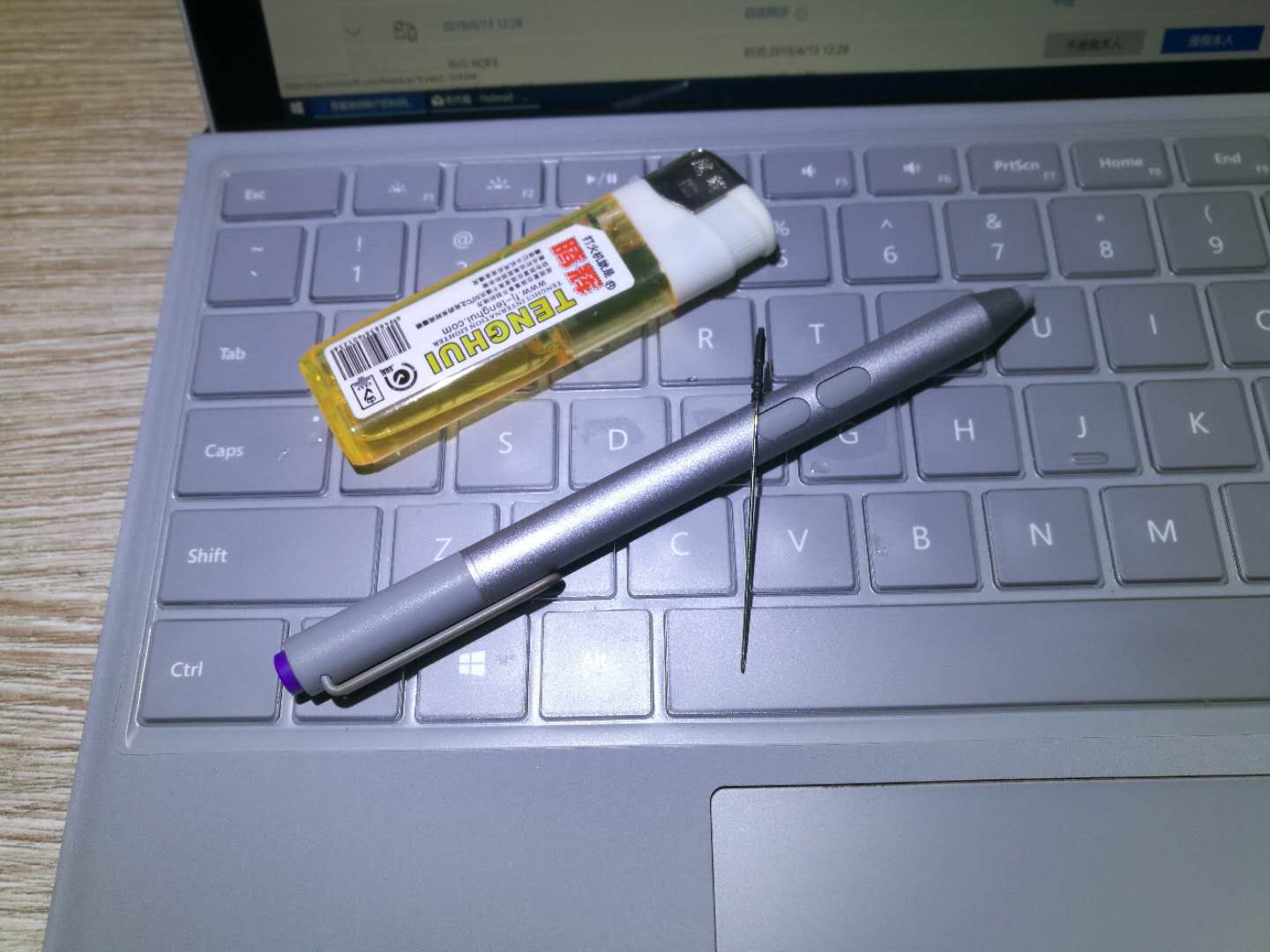 后面看资料,这笔尖是软的,尖头也不是很细。我找了一根细针,用打火机加热了尖头,没想到针头很容烧红。之后就是小心的插入笔头,感觉进入一些后,往外拉,没想到真的带出来了。